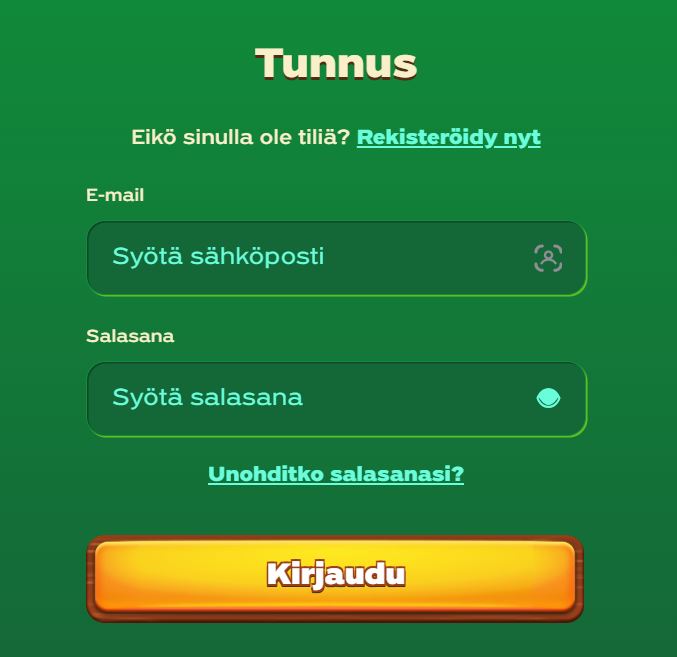 Kunhan kasinolle on kertaalleen luonut pelitilin, jatkossa GreenLuckille sisäänkirjautuminen onnistuu helposti. Tarvitset kirjautumiseen vain sähköpostiosoitteesi ja rekisteröitymisen yhteydessä keksimäsi salasanan.